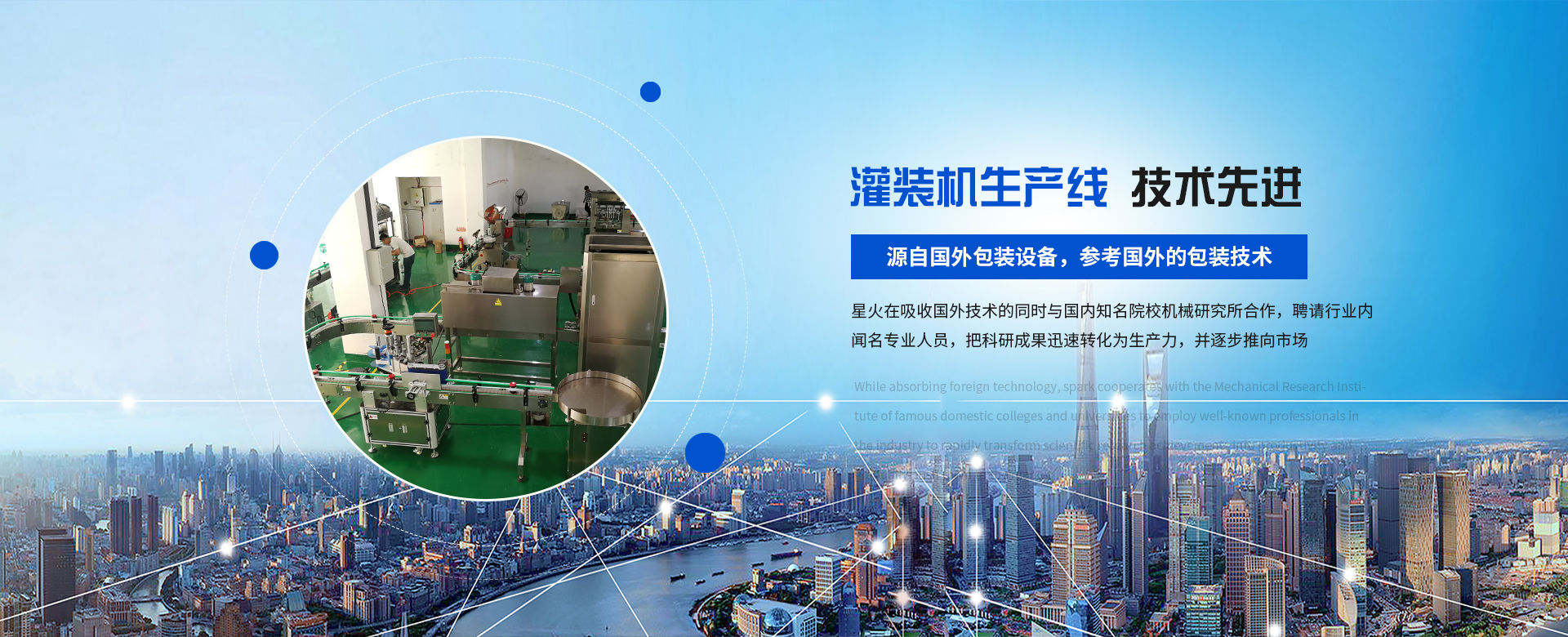 源自國外包裝設備,參考國外的包裝技術(shù),與國內(nèi)知名院校機械研究所合作。灌裝機等設備已擁有十多項產(chǎn)品知識產(chǎn)權(quán)和專利技術(shù)